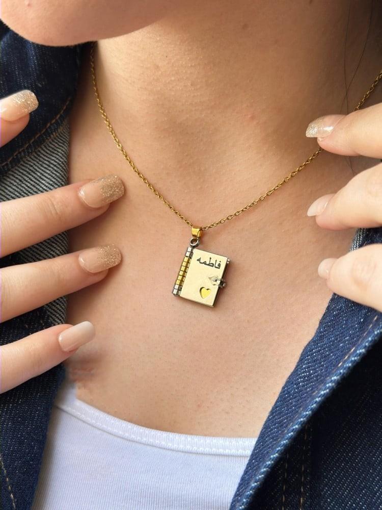 اهدي من تحب قطعه مميزه سلسال الدفتر الذكرى انيق و جميل ويحمل العبارات حسب الطلب مناسب لكِ أو كهدية رائعة يكتب عليها من الداخل و الخارج يفتح و يتسكر بسلاسة تستطيع الكتابة عليه على 3 صفحات مطلي ذهب وفضة